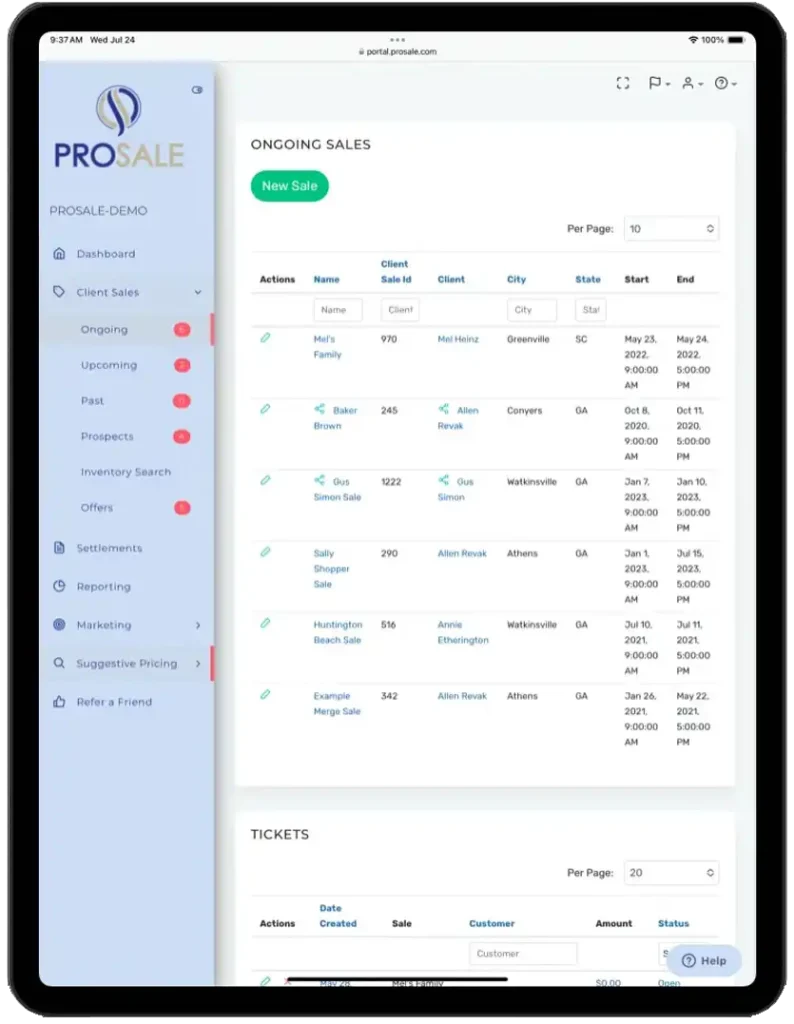 PROSALE offers the first-ever estate sales management software to drive growth in the estate sale industry. Estate sale companies and estate liquidators deserve better solutions. PROSALE is here to solve that with estate sale software. Some features include: